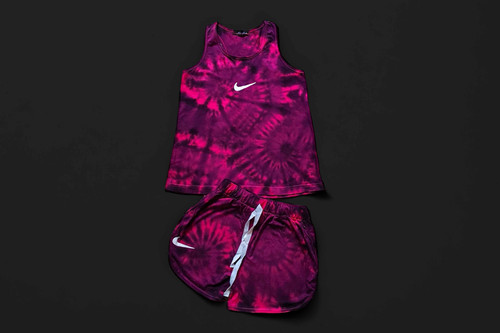 ست رکابی شلوارک دخترانه تای دای ( شیبوری ) صورتی- آبی