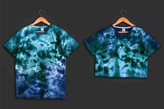 ست کراپ زنانه و تیشرت مردانه تای دای ( شیبوری ) مدل دریا