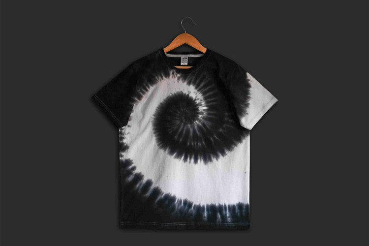 تیشرت تای دای ( شیبوری ) اسپیرال تک رنگ مشکی سفید