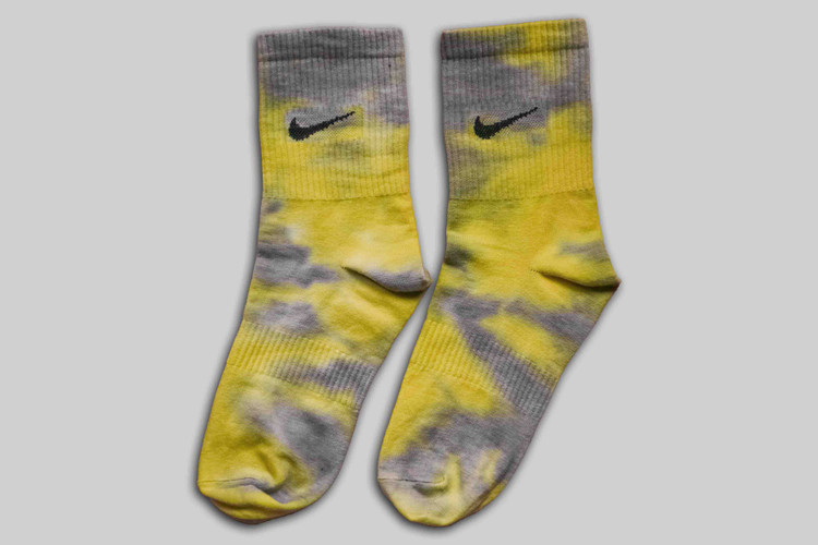 جوراب نایک پنبه ای تای دای زرد-خاکستری