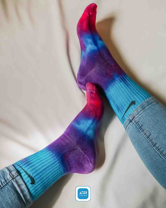 جوراب های تای دای تماما کار دست هستند ، امکان اجرای صد درصد مشابه امکان پذیر نمیباشد و به همین علت منحصربهفرد می باشد.
