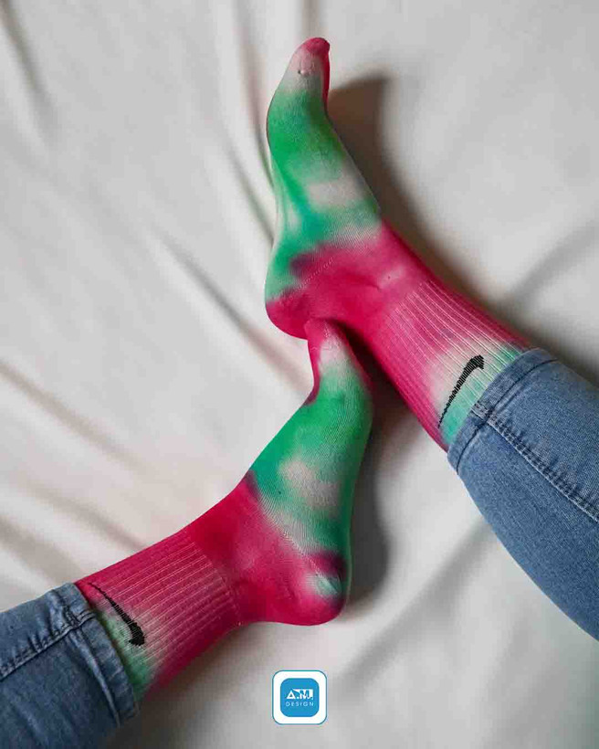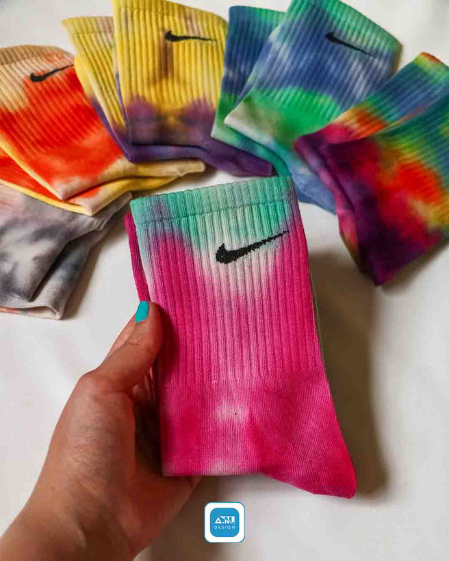 جوراب های تای دای تماما کار دست هستند ، امکان اجرای صد درصد مشابه امکان پذیر نمیباشد و به همین علت منحصربهفرد می باشد.
