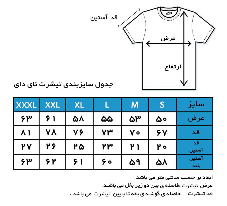لطفا هنگام خرید طبق جدول سایزبندی سایز خودرا با دقت انتخاب فرمایید