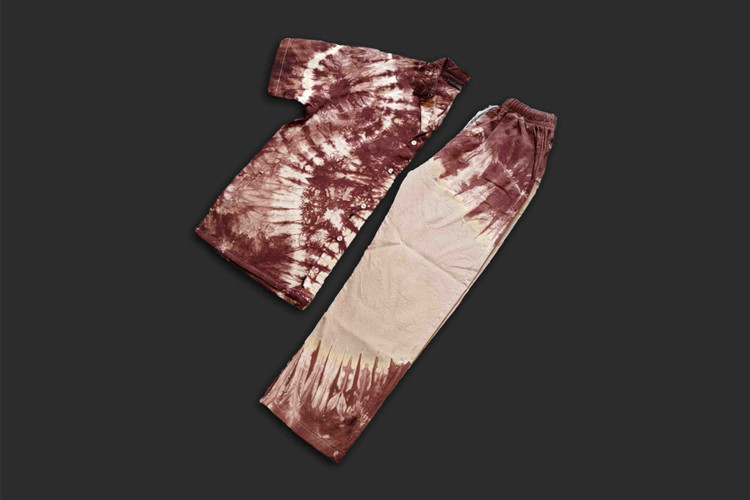 ست پیراهن و شلوار کتان تای دای ( شیبوری ) کرم قهوهای