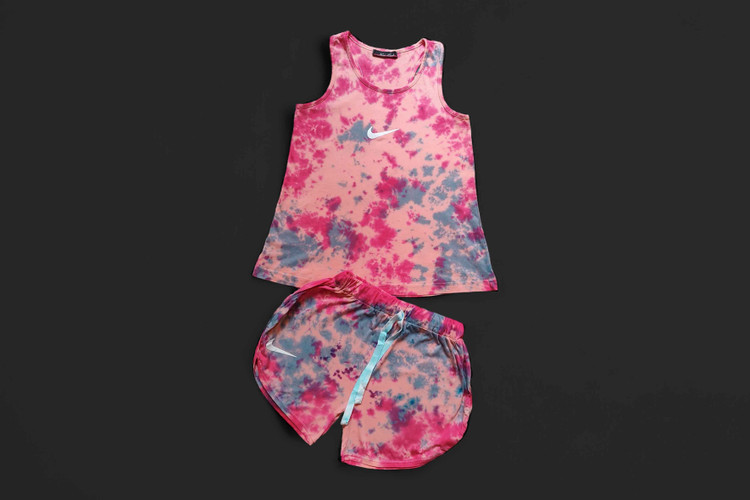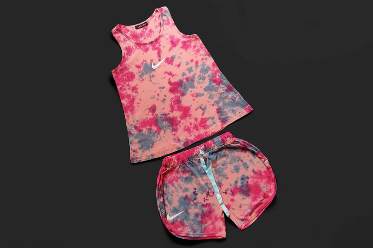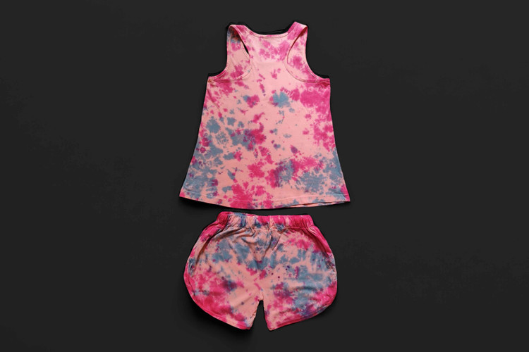ست رکابی شلوارک دخترانه تای دای ( شیبوری ) صورتی- آبی