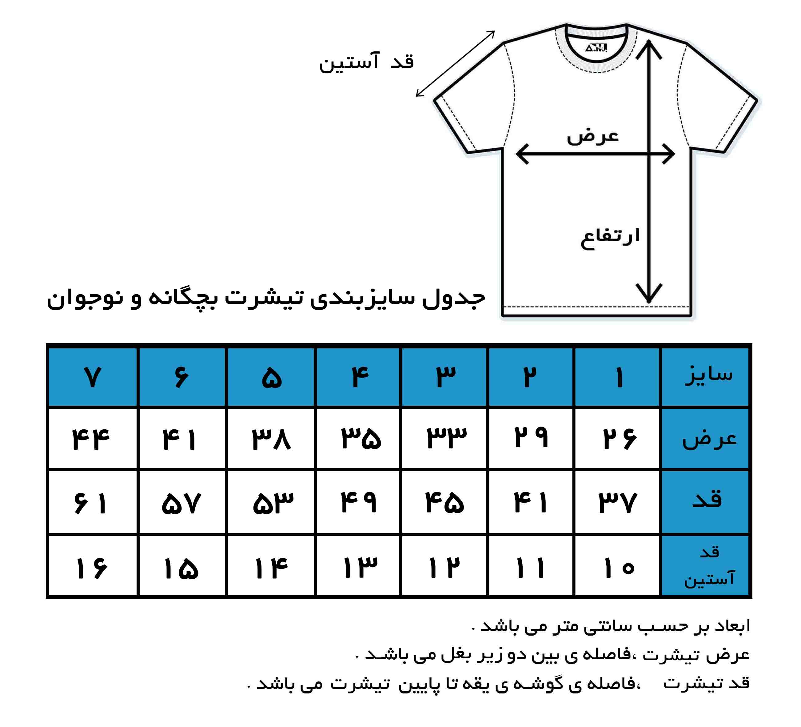 از سایز 1 تا 7 طبق جدول سایزبندی